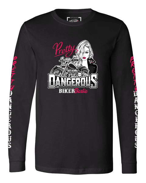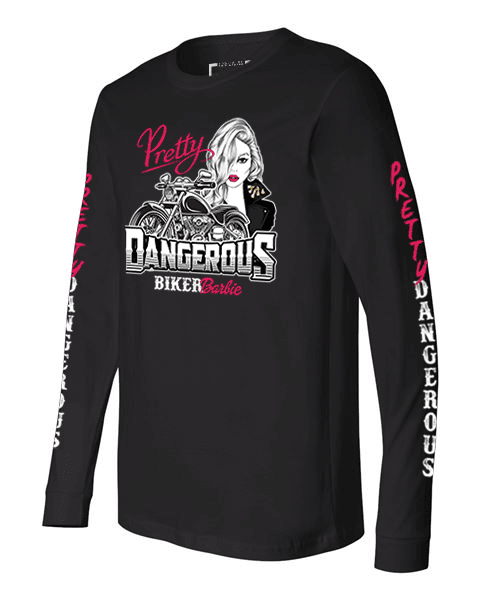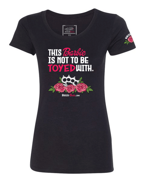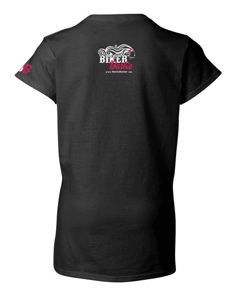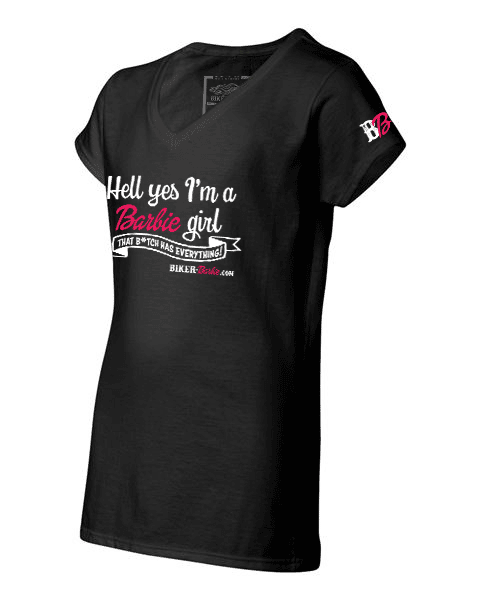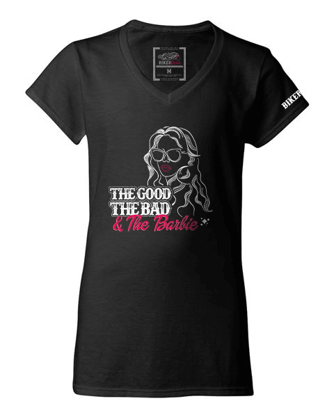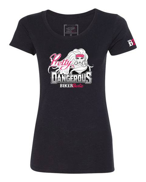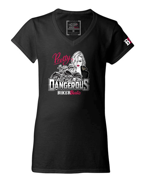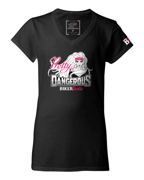 The V-neck of our signature Biker Barbie shirt fits like a well-loved favorite, featuring a modern slim